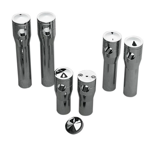Chrome billet aluminum risers feature the unique concept of a removable cover that hides the upper handlebar clamp bolts. Accepts stock Springer riser studs and nuts. For use with handlebars with a 1″ diameter in the clamping area.