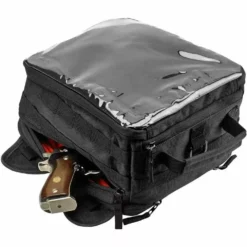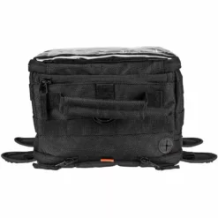 The EXFIL-11 is made out of super-durable and water-resistant, UV-treated 1680D Polyester and attaches easily to any steel gas tank with incredibly strong built-in magnets. The interior is lined with high-vis orange nylon and has a convenient mesh pouch at the rear, and under the lid. Multiple audio grommets allow for headphones or charging cords. The clear map pouch on top is touch-sensitive so your electronic devices can be used without opening it. Both sides feature quick-access zippers for easy access to important items. Baffles on each side can be utilized to help the bag wrap over the contour of a gas tank strap or left close for flat surfaces.