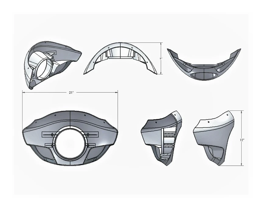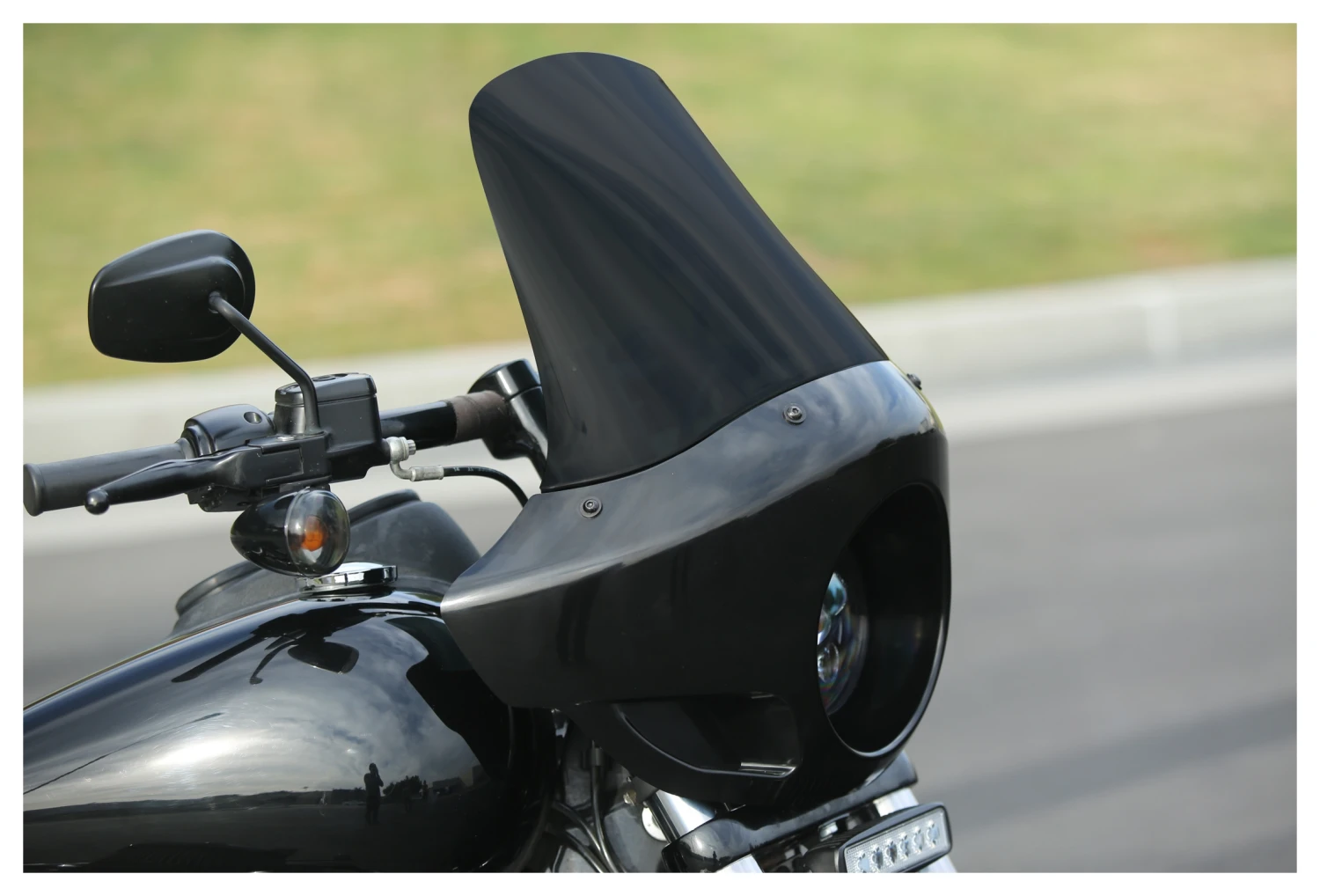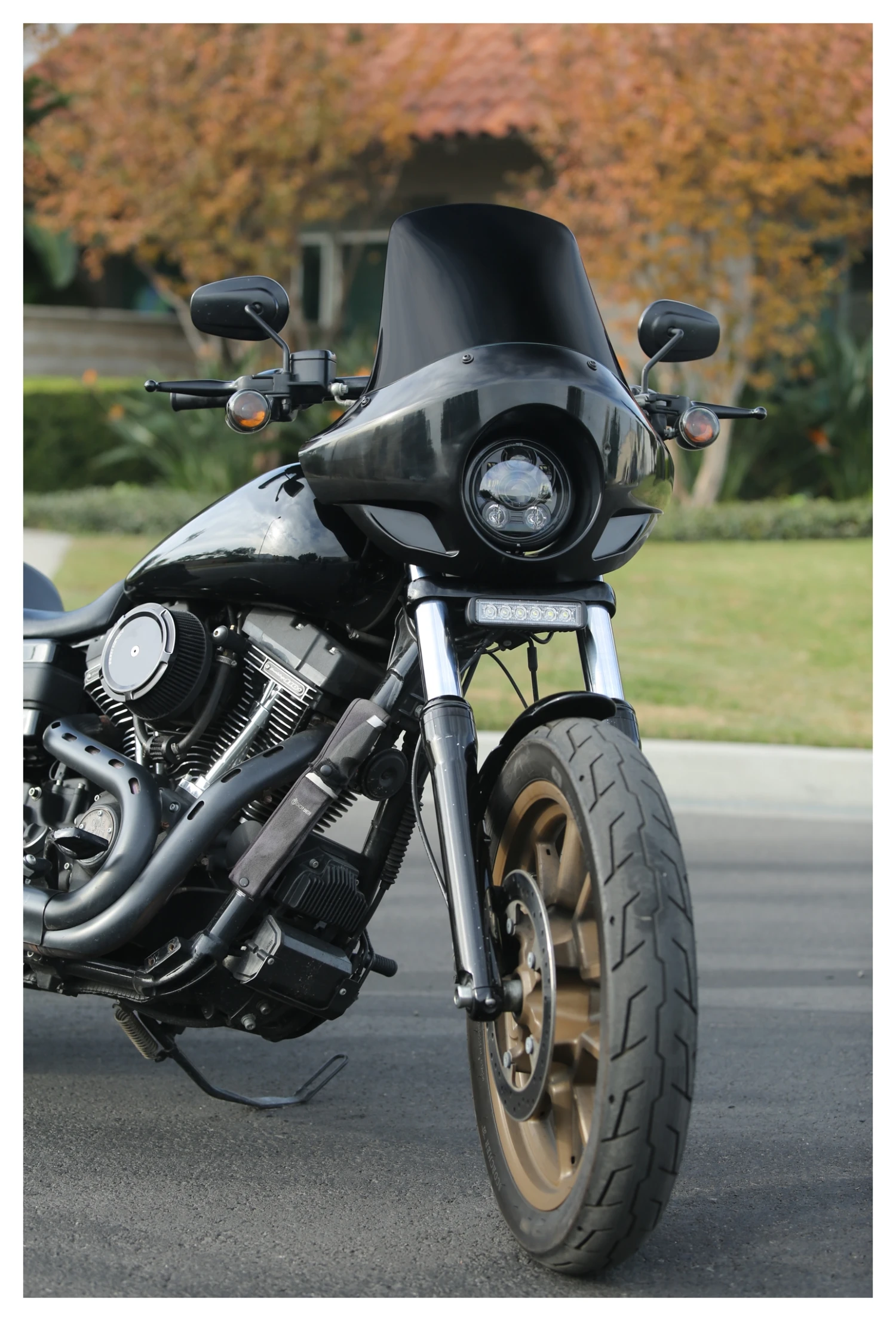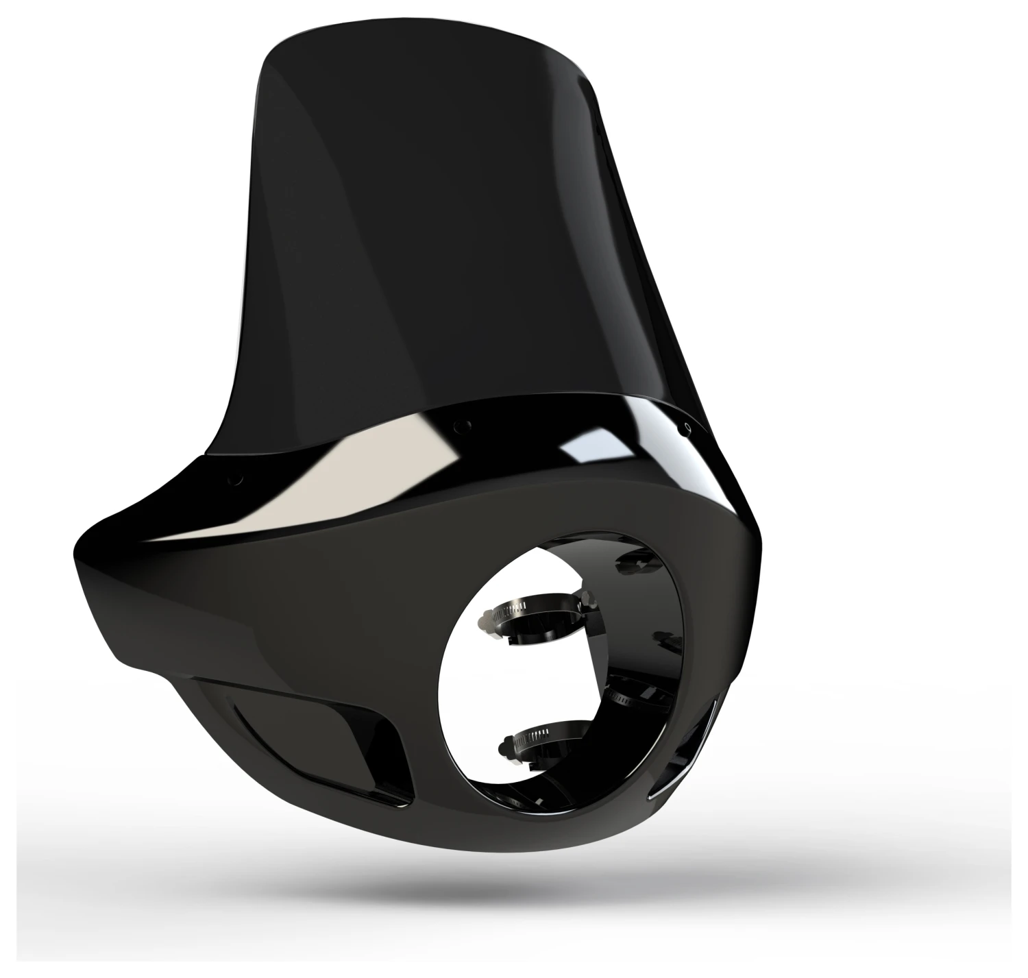 The Touring Sport fairing embodies an aggressive cruiser style inspired by FXR and T-Sport DNA. The sweeping lines flow nicely with the motorcycle and look great with a variety of handlebar setups. Flanking the headlight bucket are two styling pockets with great potential for further customization with lighting. The fairings are made of high quality molded ABS and paired with an opaque impact resistant acrylic windscreen for strength and durability. Included with all fairings is a universal mounting kit consisting of black powder coated heavy duty steel brackets with a range of adjustability fitting 35mm-49mm forks. Take your next expedition with the Touring Sport Fairing.