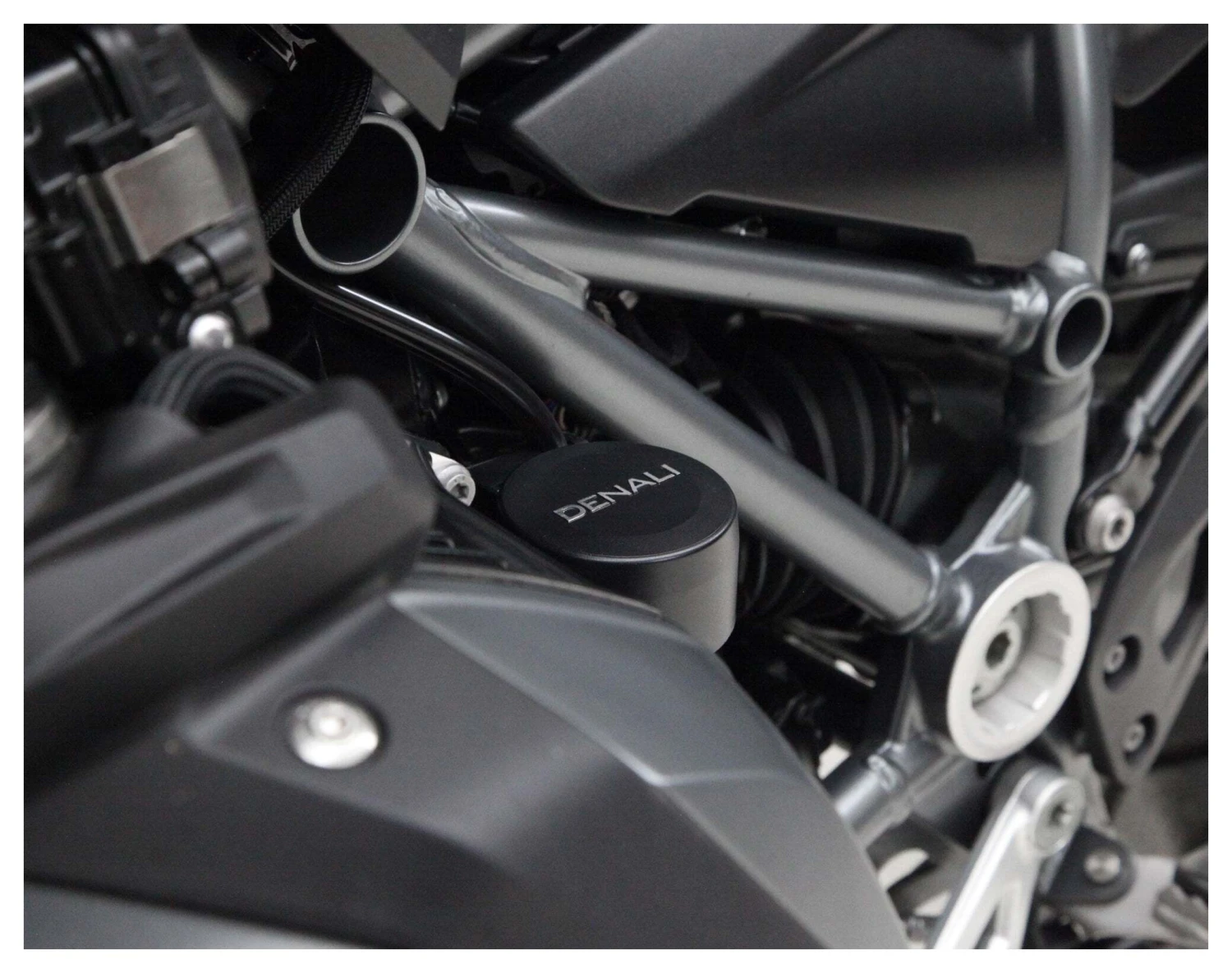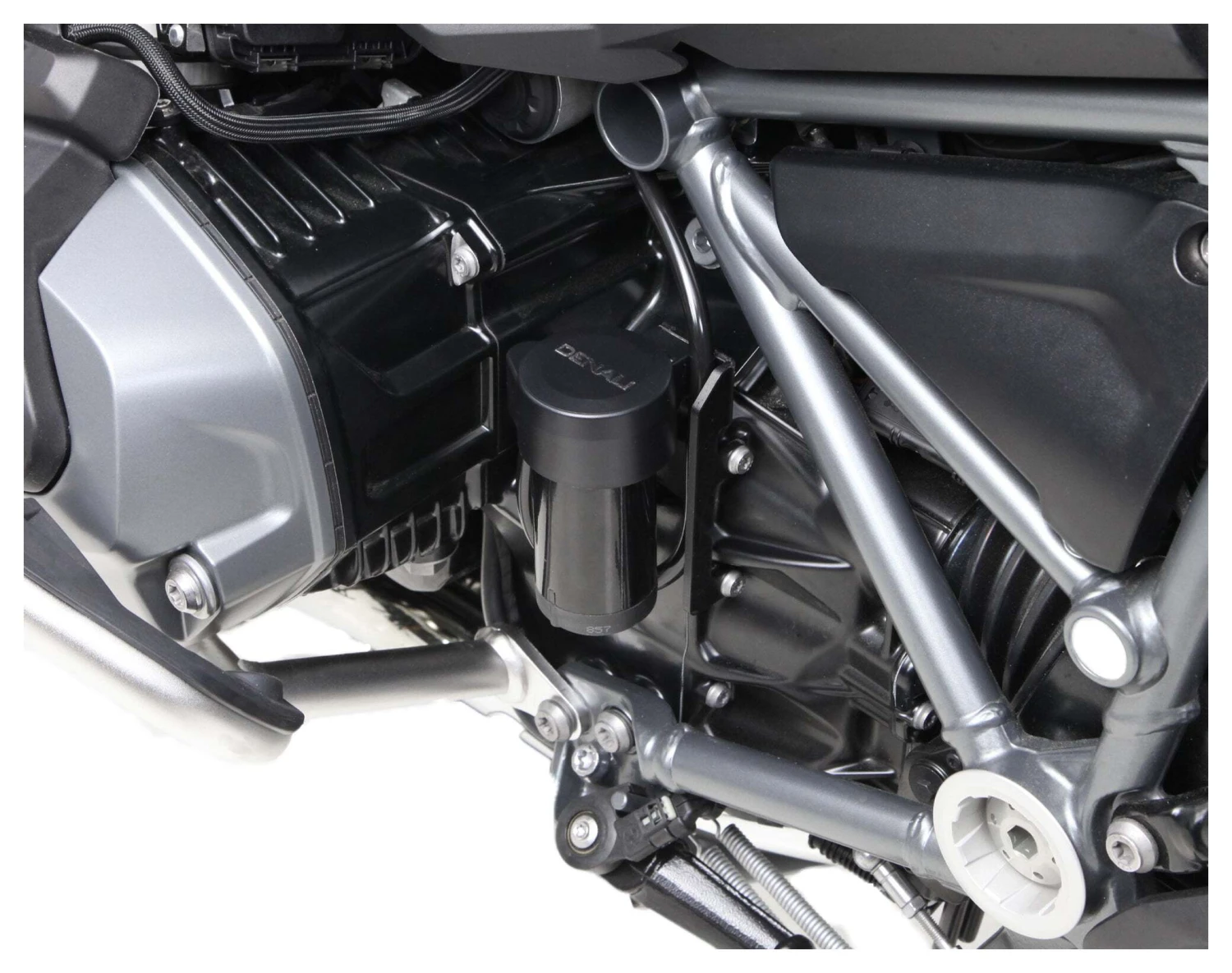 This vehicle specific split horn mount allows you to mount the Denali SoundBomb Split Dual-Tone Air Horn in the optimum location on your BMW R1200GS/GSA or R1250GS/GSA. This kit includes one powder-coated steel bracket to mount the horn compressor behind the cylinder head and a second bracket to mount the horn acoustic unit centered under the fairing stay.