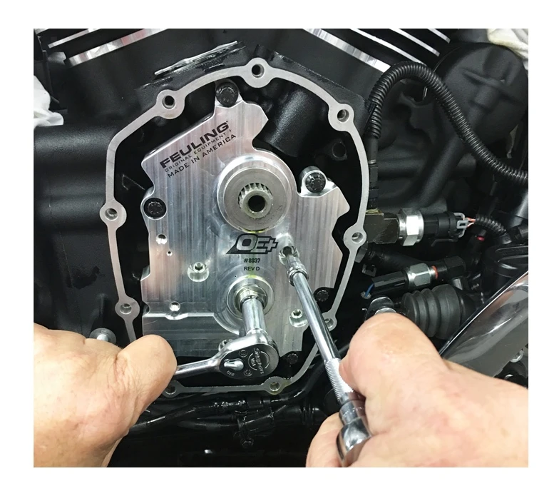 Note: Fits only models w/ Feuling OE+ camplate and factory HD oil pump. Requires use of washers with ARP oil pump bolts.