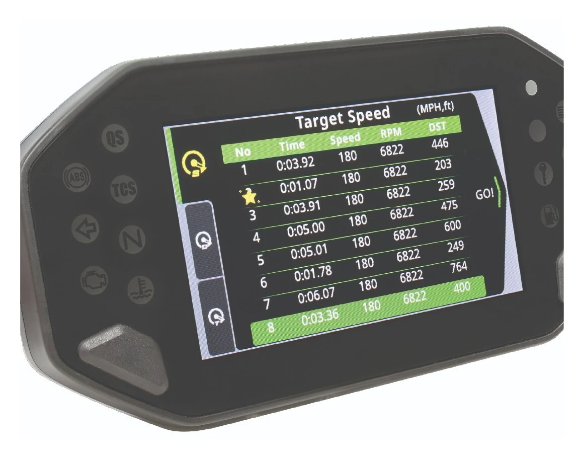 - Gear indicator, gear shift indicator, top speed/target speed data
