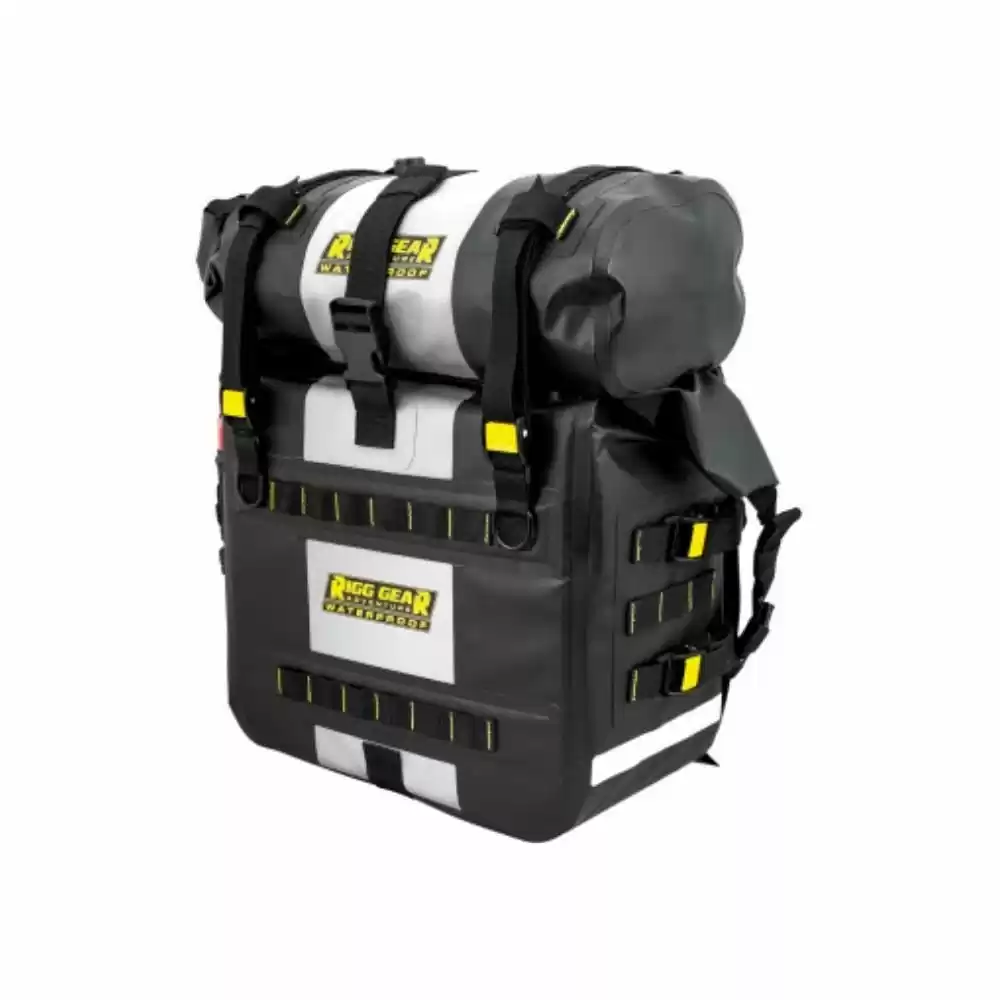 - Metal D-rings can be used to mount dry roll bags on top