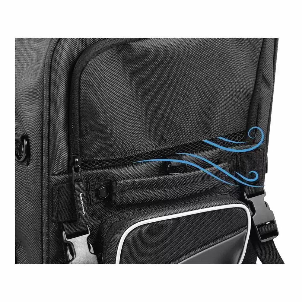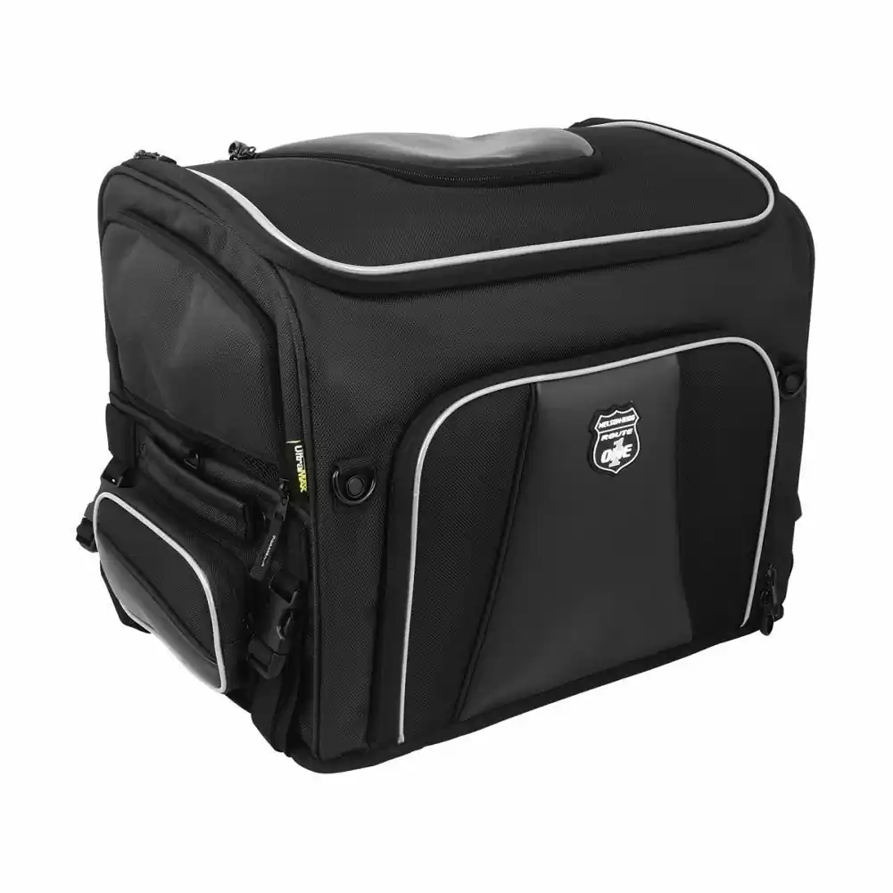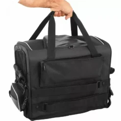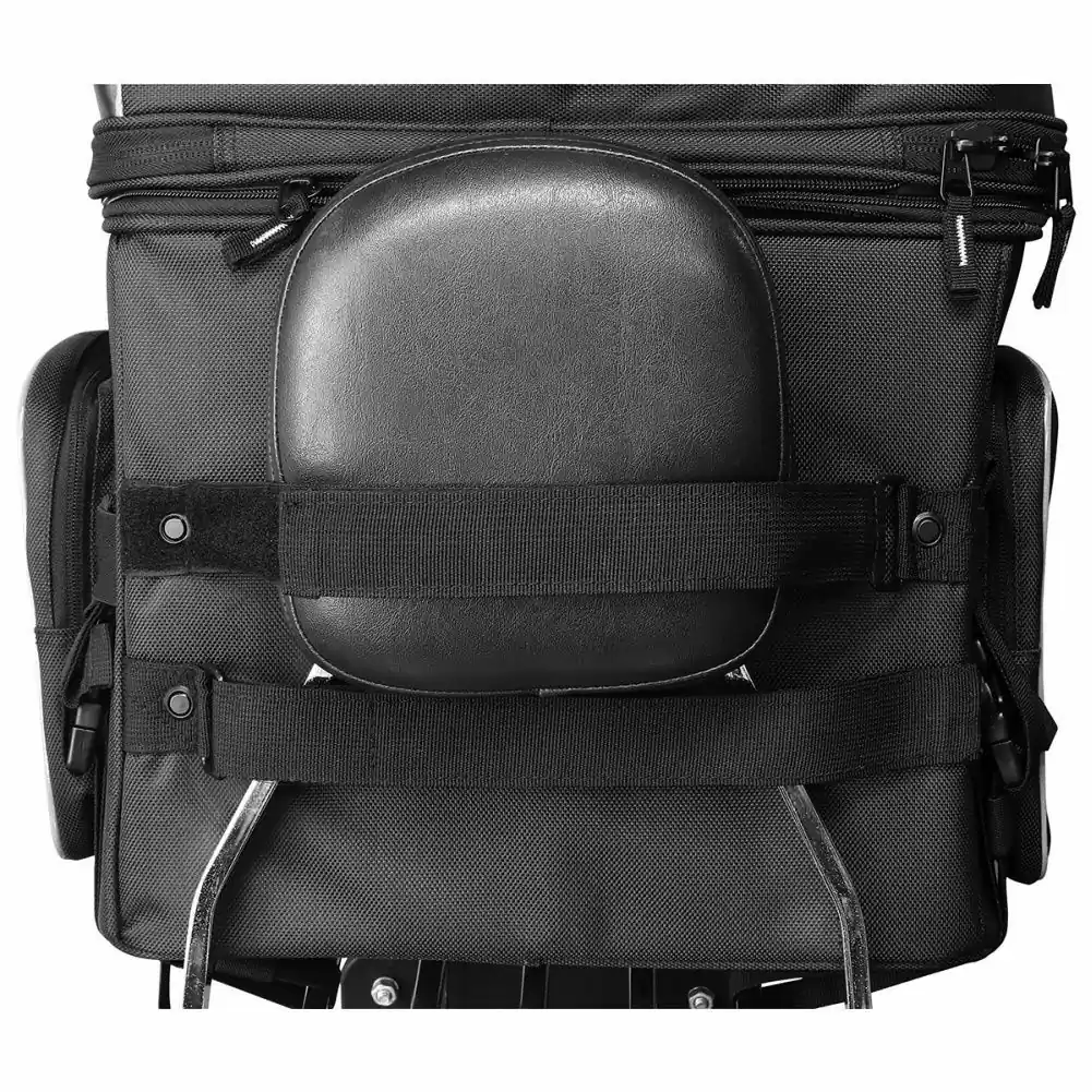 - Mounts to tour trunk racks, sissy bar or seat using quick release and self-fastening straps