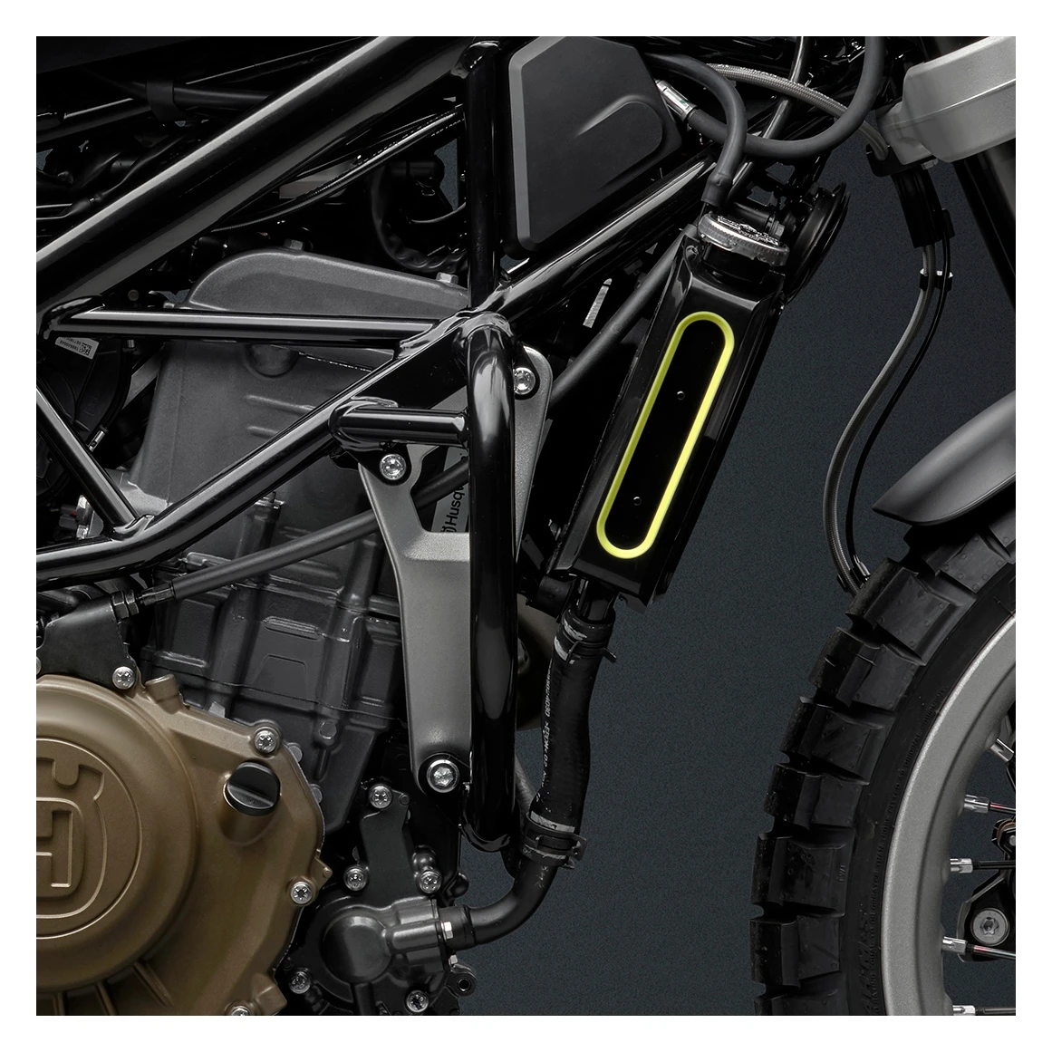 The Rizoma Engine Guards features steel tubing that has been shaped and finished to match the design of the Svartpilen 401.